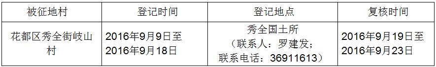 (二)本次征收土地所涉及的被安置农业人员由各被征地村村以货币补偿的形式安置。请各被征地村在本公告期内到花都区国土房管分局领取办理安置农业人口征地农转非手续的函件。
