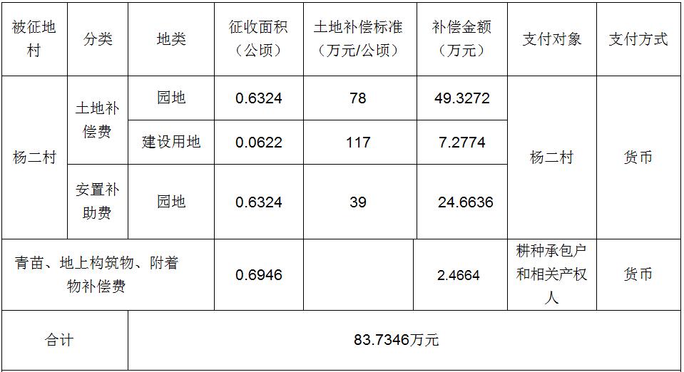经省人民政府批准(粤国土资(建)字[2016]411号文),需将花都区花城街杨二村属下的集体用地0.6946公顷(合10.4190亩)征收为国有土地。现将经依法批准的《征收土地方案》和市人民政府批准的《征地补偿安置方案》内容和有关事项公告如下: