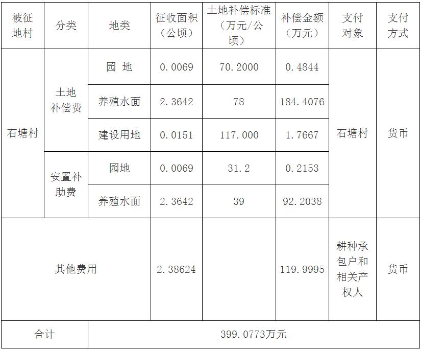 经省人民政府批准(粤国土资(建)字〔2016〕281号文),需将bet365亚洲官网 新雅街石塘村属下的集体土地2.3862公顷(合35.79亩)征收为国有土地。现将经依法批准的《征收土地方案》和市人民政府批准的《征地补偿安置方案》内容以及有关事项公告如下: