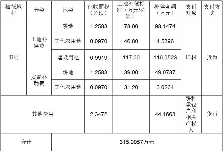 四、征地补偿安置方案: