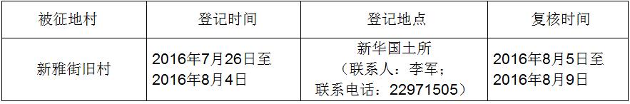五、被征收土地四至范围内的土地所有权人、使用权人在本公告规定的期限内,持土地权属证书或其他有关证明材料,到指定的地点办理征地补偿登记,请互相转告。